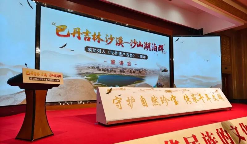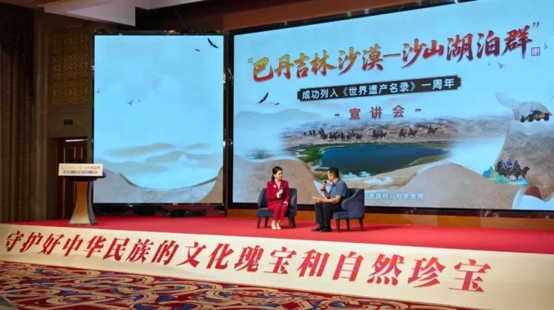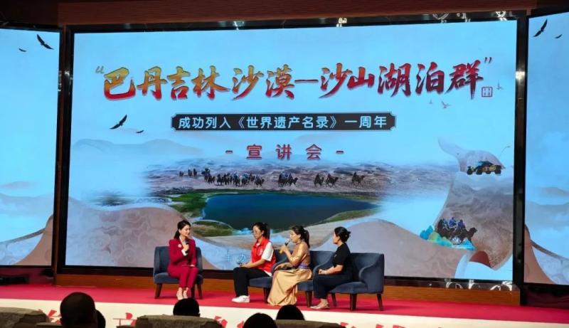 宣講會上,知名專家、一線工作者、志愿服務(wù)隊(duì)代表等宣講嘉賓和文旅從業(yè)者齊聚一堂,通過主題宣講、人物訪談的形式,共同回顧了“巴丹吉林沙漠—沙山湖泊群”申遺成功一周年以來的保護(hù)成果,立體展現(xiàn)了巴丹吉林沙漠的生態(tài)價(jià)值、保護(hù)實(shí)踐與時(shí)代意義,探討這片世界自然遺產(chǎn)的未來發(fā)展之路。
