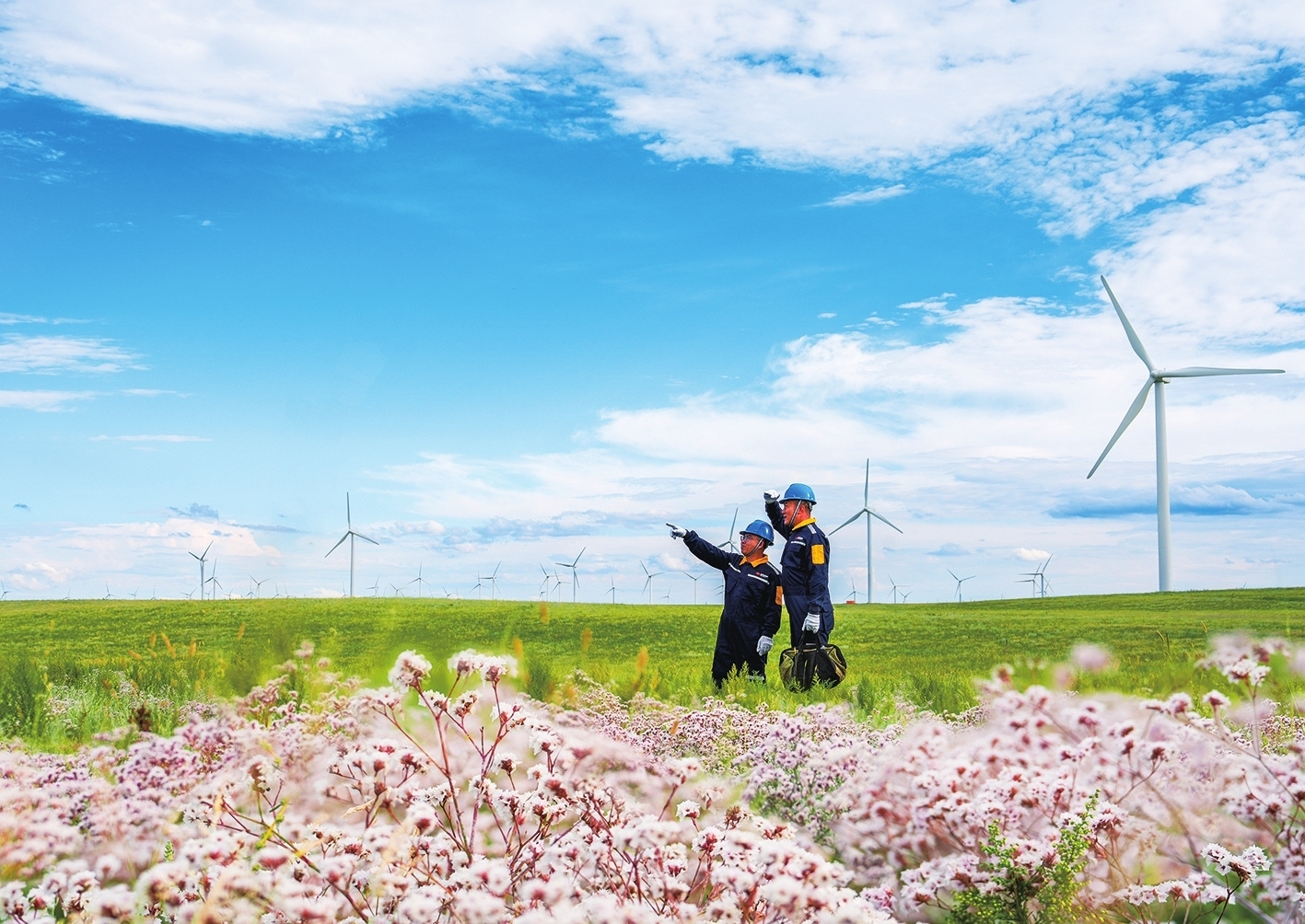 近日,國華投資蒙東分公司輝騰梁風電場內,風機群與遍野花海相映成趣,兩名風電運維工程師,正在交流剛處理完的偏航故障細節(jié),核對風速儀、風向標校準數據,討論后續(xù)防沙維護措施,同時檢查設備運行狀態(tài),確保風機穩(wěn)定發(fā)電。