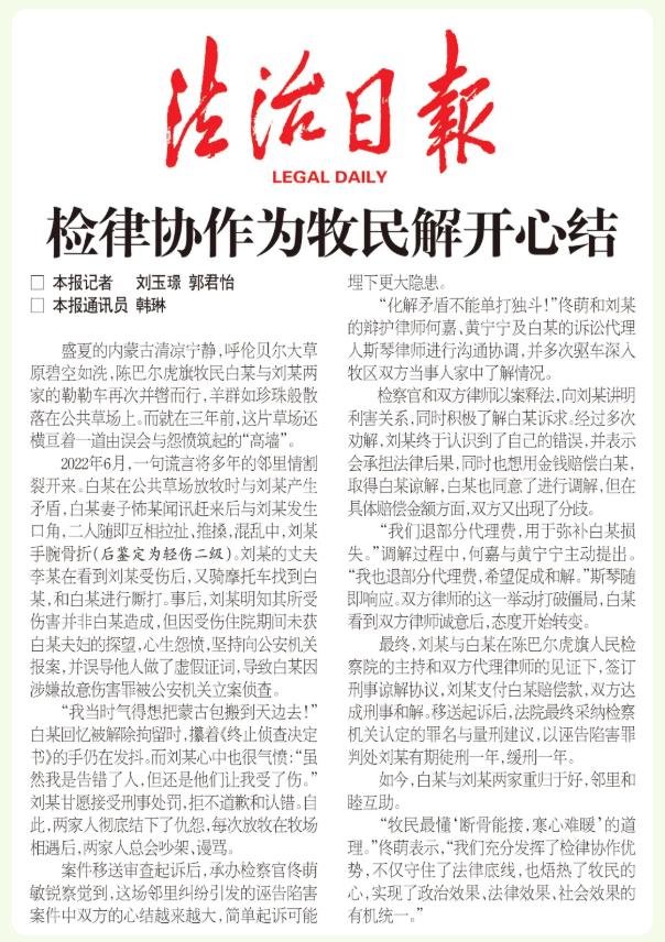 “牧民最懂‘?dāng)喙悄芙?,寒心難暖’的道理?!辟∶缺硎?,“我們充分發(fā)揮了檢律協(xié)作優(yōu)勢,不僅守住了法律底線,也焐熱了牧民的心,實(shí)現(xiàn)了政治效果、法律效果、社會(huì)效果的有機(jī)統(tǒng)一?!保?span style="text-align: justify;">作者 劉玉璟 郭君怡 韓琳)