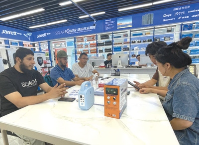 最近,埃馬紐埃爾又開始關(guān)注新能源產(chǎn)品?!翱溌∫恍┑胤酱嬖陔娏Χ倘?、供電不穩(wěn)的問題,很多當(dāng)?shù)厝讼M夷茉谥袊业胶线m的產(chǎn)品?!睘榇?,他把目標瞄準了義烏國際商貿(mào)城的新能源產(chǎn)品市場,尋找到一些適合喀麥隆的光伏設(shè)備。“中國的新能源產(chǎn)品性能可靠、性價比高,產(chǎn)品品類覆蓋領(lǐng)域廣泛?!卑qR紐埃爾表示,大到醫(yī)療機構(gòu),小到禽畜養(yǎng)殖場,中國光伏設(shè)備供應(yīng)的電力有助于滿足當(dāng)?shù)孛癖娚a(chǎn)生活的用電需求。