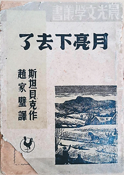 趙家璧在20世紀(jì)30年代就對美國文學(xué)很感興趣,讀過斯坦貝克的《人鼠之間》《憤怒的葡萄》。1942年,他在桂林看到了《月亮下去了》,很快就讀完了,作品中侵略者的橫行霸道,淪陷區(qū)人民的不屈抵抗,讓他覺得這講的簡直就是中國淪陷區(qū)的事,遂對作品全文進(jìn)行了翻譯。該譯本問世后再版多次,影響了一代又一代讀者。