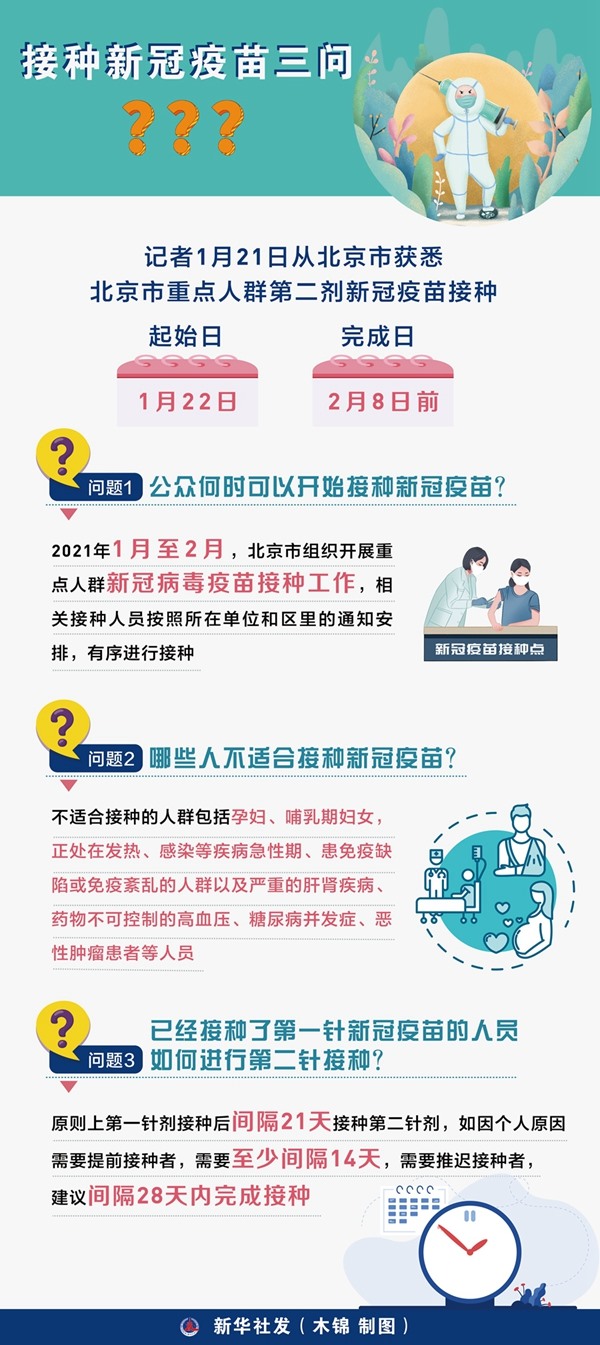 公眾何時可以接種新冠肺炎疫苗?哪些人不適合接種?如何進(jìn)行第二劑接種?北京市有關(guān)專家進(jìn)行了解答。