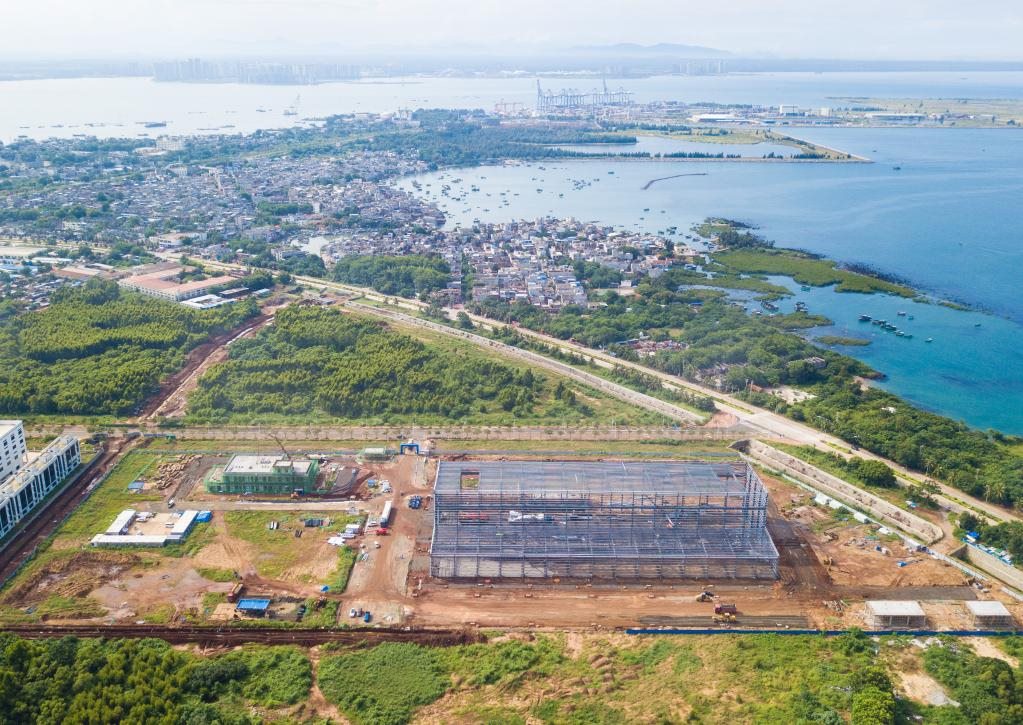 圖為10月2日在海南洋浦經(jīng)濟(jì)開發(fā)區(qū)拍攝的建設(shè)中的申能電氣風(fēng)電新能源裝備產(chǎn)業(yè)項目(無人機(jī)照片)。新華社記者蒲曉旭攝