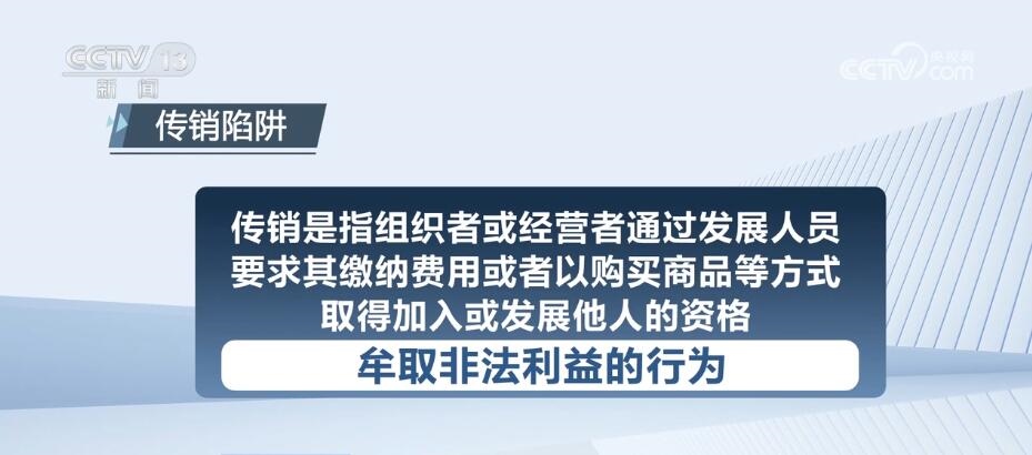 傳銷是指組織者或經(jīng)營者通過發(fā)展人員,要求其繳納費用或者以購買商品等方式,取得加入或發(fā)展他人的資格,牟取非法利益的行為。