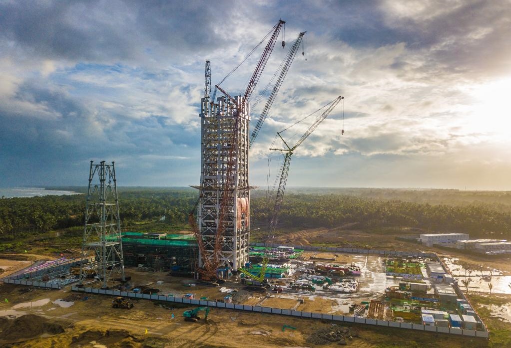 圖為建設中的海南商業(yè)航天發(fā)射場1號工位(無人機照片,5月12日攝)。 新華社記者蒲曉旭 攝