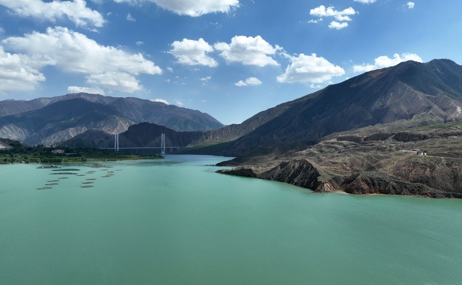 這是5月13日在黃河上游尖扎段拍攝的風(fēng)光(無人機(jī)照片)。新華社記者 張宏祥 攝