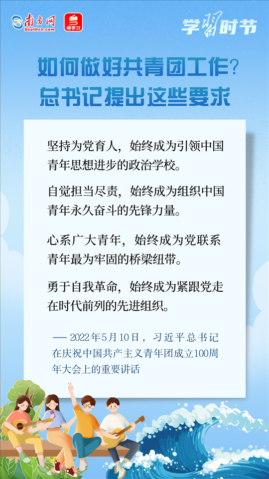6月26日,習近平總書記同團中央新一屆領導班子成員集體談話并發(fā)表重要講話??倳洀娬{,黨和國家事業(yè)的希望寄托在青年身上。希望共青團中央深入貫徹黨中央要求,切實肩負起新時代新征程黨賦予的使命任務,傳承弘揚優(yōu)良傳統(tǒng),堅持改革創(chuàng)新,更好把青年一代團結凝聚在黨的周圍,為推進強國建設、民族復興偉業(yè)接續(xù)奮斗。