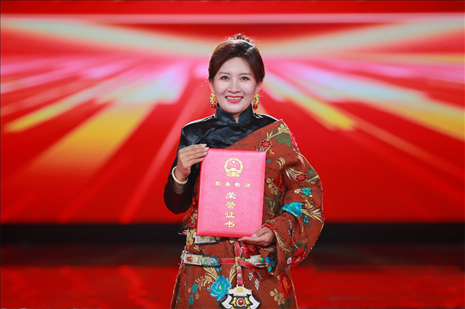 中宣部分管日常工作的副部長、文化和旅游部部長胡和平(左一) 教育部黨組書記、部長懷進(jìn)鵬(右一) 為最美教師和最美教師團(tuán)隊(duì)頒獎(jiǎng)