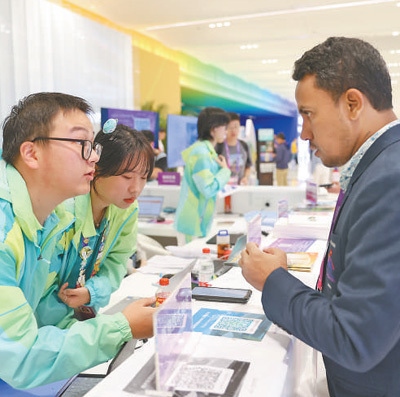 杭州亞運會主媒體中心志愿者為記者提供咨詢服務。本報記者 張武軍攝