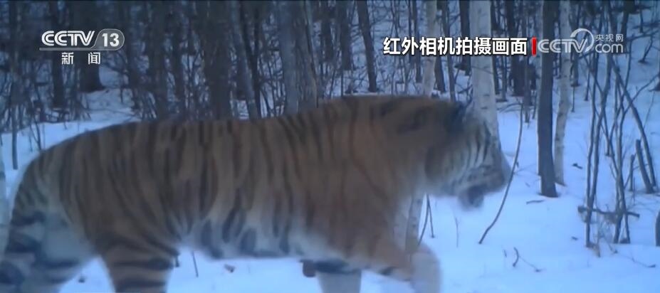 國家林業(yè)和草原局貓科動物研究中心科研助理 趙越:當時我們放歸的時候,它是一只亞成年的東北虎,到現(xiàn)在它的體型變得更加大,而且也壯碩了很多。除了東北虎以外,還有東北豹的相關(guān)活動(視頻)。我們通過花紋比對和出現(xiàn)的信息,我們判斷不止一只東北豹在這個地區(qū)活動。