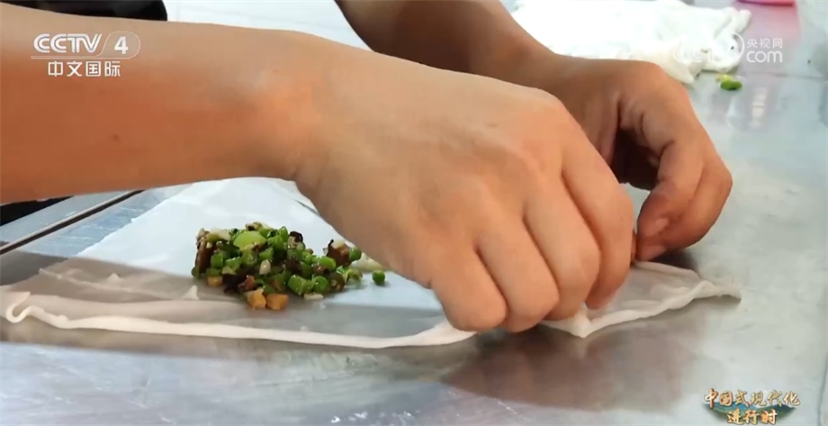 除了“射手王”,網(wǎng)友們還給他起了一個(gè)外號叫“卷粉王”。今年34歲的董永恒在縣城開了一家小店,售賣當(dāng)?shù)貍鹘y(tǒng)特色美食卷粉。在球場上他腳底利索,沒想到手上更利落,董永恒一天要包1000多個(gè)卷粉。