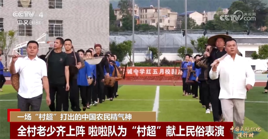 央視網(wǎng)消息:黨的二十大報(bào)告指出,中國式現(xiàn)代化是物質(zhì)文明和精神文明相協(xié)調(diào)的現(xiàn)代化。在廣大農(nóng)村地區(qū),農(nóng)民精神文化生活狀況是鄉(xiāng)村振興乃至經(jīng)濟(jì)社會發(fā)展全局的重要衡量指標(biāo)。近年來,“土味”十足的“村BA”“村超”等農(nóng)民自發(fā)舉行的體育賽事火爆全網(wǎng)。正在貴州榕江舉行的“村超”本周六(7月29日)將迎來總決賽,今天的系列節(jié)目《中國式現(xiàn)代化進(jìn)行時(shí)》,我們跟隨記者的鏡頭去看看“村超”的比賽盛況。