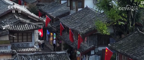 云南麗江:古城青磚黛瓦 國旗迎風(fēng)飄揚(yáng)