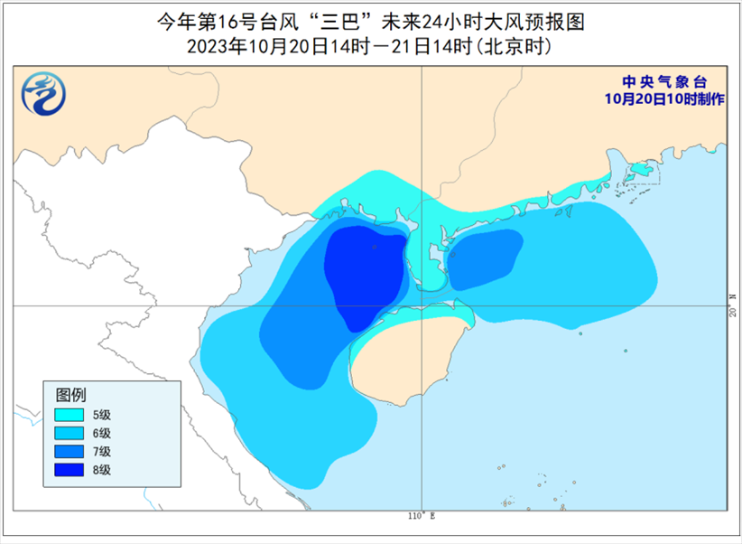 大風(fēng)預(yù)報:20日14時至21日14時,南海西北部、北部灣、瓊州海峽、廣東中西部沿海、廣西沿海、海南島北部和西部沿海將有6-8級風(fēng),陣風(fēng)9-10級。