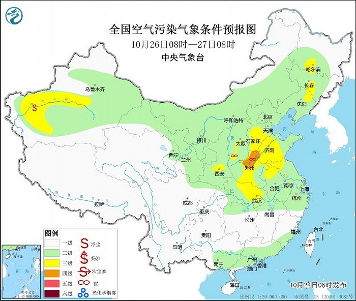 央視網(wǎng)消息:據(jù)中央氣象臺(tái)網(wǎng)站消息,10月24日至25日,華北中南部、黃淮北部等地大氣擴(kuò)散條件較差,部分地區(qū)有輕至中度霾,北京南部、天津、河北中部局地可達(dá)重度霾。24日早晨至上午,北京南部、天津中北部、河北中部、江蘇中南部等地的部分地區(qū)有大霧,局地有強(qiáng)濃霧。26日凌晨起,受冷空氣影響,華北、黃淮等地大氣擴(kuò)散條件自北向南逐漸轉(zhuǎn)好。