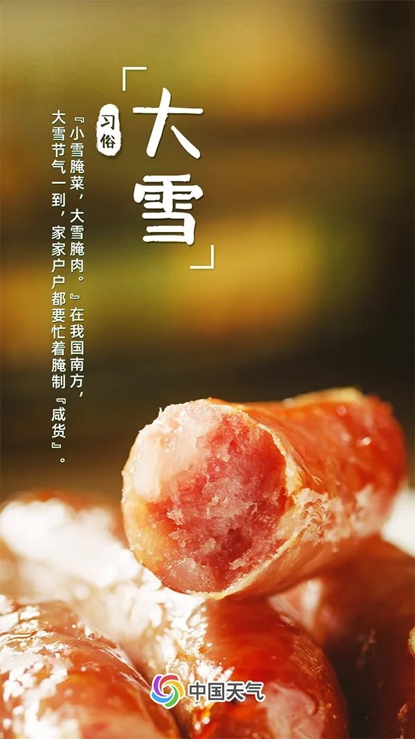 大雪節(jié)氣一到,北方多地也迎來(lái)了一年一度的冰雪旅游季。賞雪景、觀(guān)冰燈,雪場(chǎng)馳騁、冰場(chǎng)嬉戲,寒冷的冬天也多了奇妙樂(lè)趣。而在南方,“小雪腌菜,大雪腌肉”,此時(shí),家家戶(hù)戶(hù)都要忙著腌制“咸貨”,用傳統(tǒng)的制作方法,將新鮮的原料加工成香氣襲人的美食,以迎接即將到來(lái)的新年。