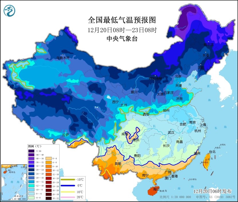 央視網(wǎng)消息:中央氣象臺12月20日06時繼續(xù)發(fā)布低溫黃色預(yù)警:預(yù)計12月20日08時至23日08時,西北地區(qū)東部、內(nèi)蒙古、華北、東北地區(qū)、黃淮、江淮、江漢東部、江南大部、華南北部、貴州東部等日最低氣溫或平均氣溫較歷史同期偏低5℃以上,其中內(nèi)蒙古中西部、華北、遼寧、黃淮東部、江淮、江南北部等地的部分地區(qū)偏低7℃以上,最低氣溫0℃線將位于貴州南部至華南北部一帶 。