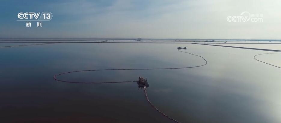 從空中俯瞰,一望無垠的鹽池里碧波蕩漾,一艘艘采鹽船在碧綠的湖面上緩緩游動作業(yè)。在當?shù)兀懈鞣N鹽類礦物質(zhì)的水被稱作“鹵水”?!胞u水”如何轉(zhuǎn)變成鉀肥?第一步便是采鹽。