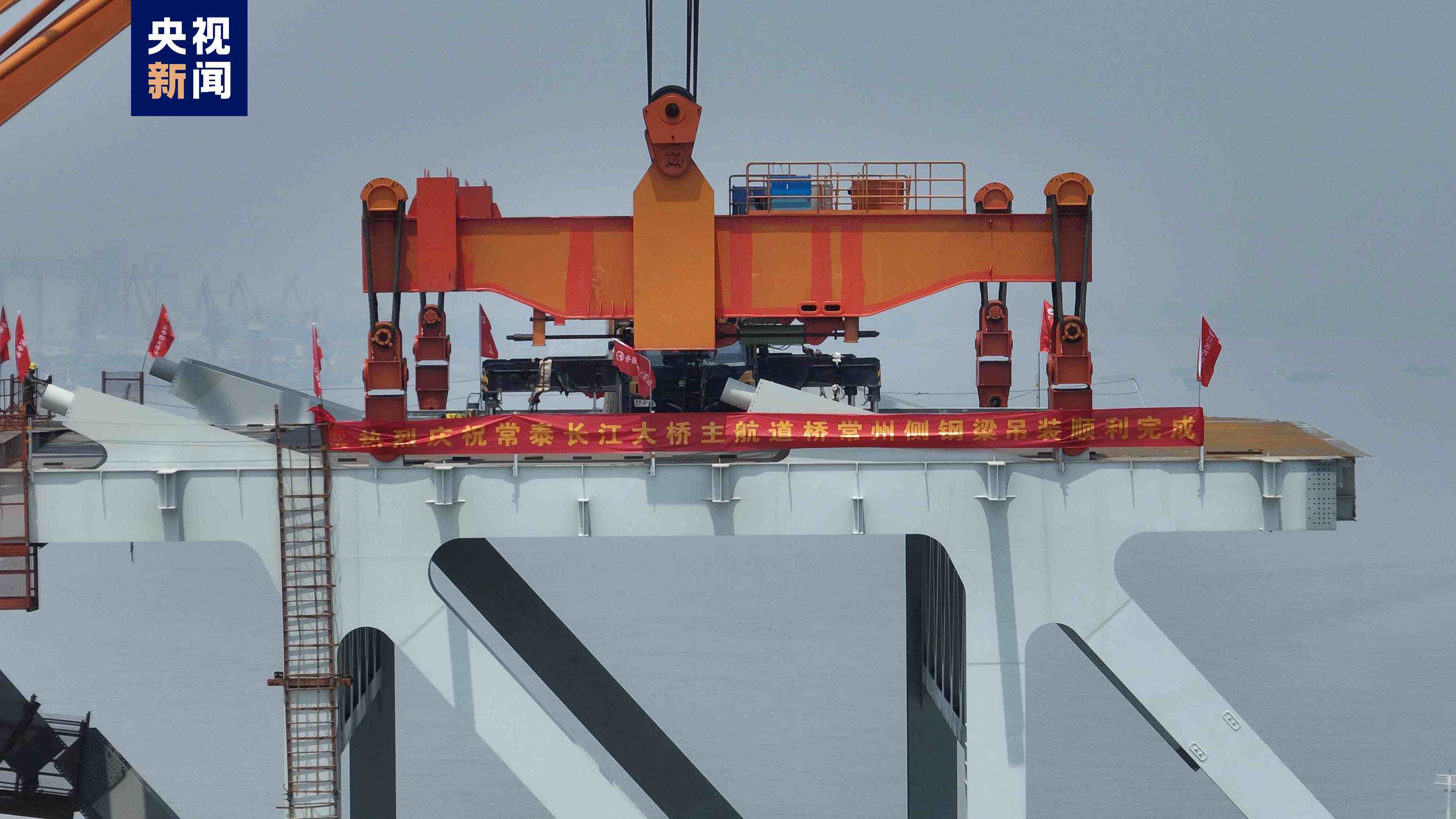 5月7日上午,常泰長江大橋主航道橋常州側(cè),最后一個大節(jié)段鋼梁平穩(wěn)吊裝完成,標志著常泰長江大橋常州側(cè)主體工程全部完成,全橋預(yù)計6月合龍。