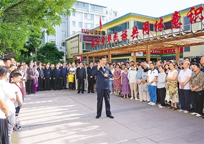 傍晚時分,社區(qū)廣場十分熱鬧,居民們看見總書記來了,紛紛圍攏過來,熱烈鼓掌歡迎。習(xí)近平親切地對大家說,時隔4年,我再次來寧夏看望各族干部群眾,見到大家非常高興!中華民族是一個大家庭,各族人民要像石榴籽一樣緊緊抱在一起。要不斷鑄牢中華民族共同體意識,把各族人民的心緊緊連在一起,把各方面的力量廣泛凝聚到一起,共同推進(jìn)中國式現(xiàn)代化,共襄中華民族偉大復(fù)興的盛舉。