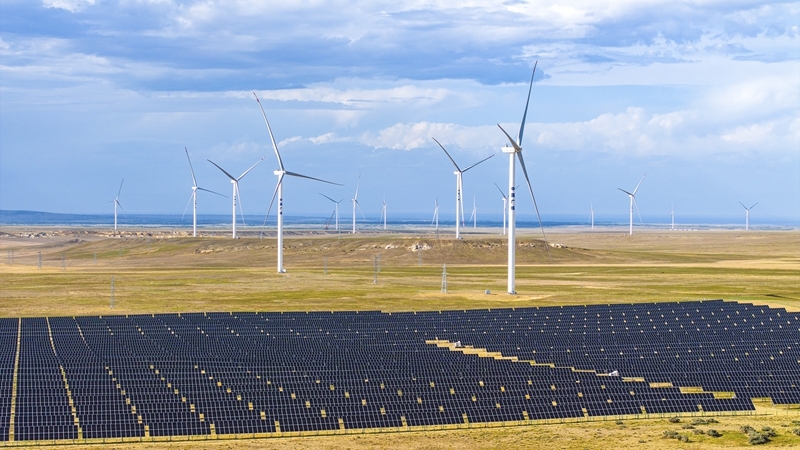 昔日的戈壁荒漠,如今由太陽(yáng)能光伏板匯聚成“藍(lán)色海洋”,由風(fēng)力發(fā)電機(jī)組成“白色森林”,正孕育著無(wú)限“風(fēng)光”。