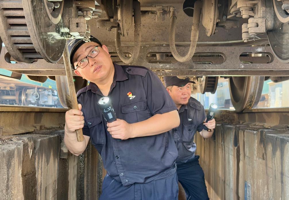 武鐵客車(chē)檢車(chē)員許立業(yè)正在巡檢。(受訪者供圖)