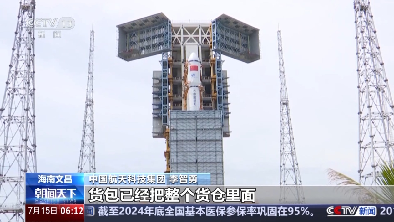 中國(guó)航天科技集團(tuán) 李智勇:裝貨量特別大,天舟九號(hào)是天舟六號(hào)以來(lái)裝貨量最大的一次,這個(gè)貨包已經(jīng)把整個(gè)貨倉(cāng)里面堆滿了,而且有些地方還突出來(lái)了。