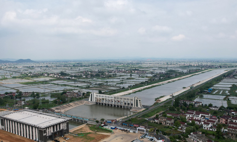 這是7月27日拍攝的引江濟(jì)淮鳳凰頸泵站(無人機(jī)照片)。