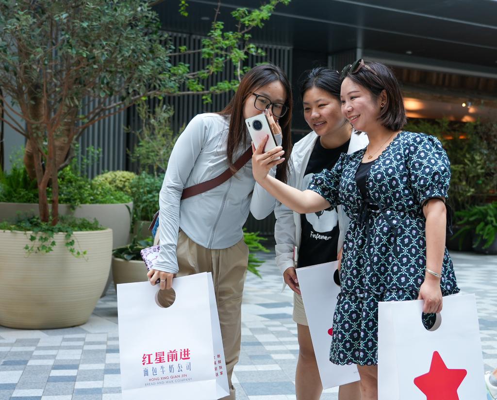 “昨天排隊的人太多,今天又來了,終于買到了?!痹卩嵵萼崠|萬象城南區(qū)下沉廣場的“紅星前進面包牛奶公司”門口,記者遇到了來此嘗鮮的鄭州市民梁女士。紅星前進區(qū)域經(jīng)理余坤告訴記者,門店每日的現(xiàn)烤面包供不應求,日客流量達1500人次。