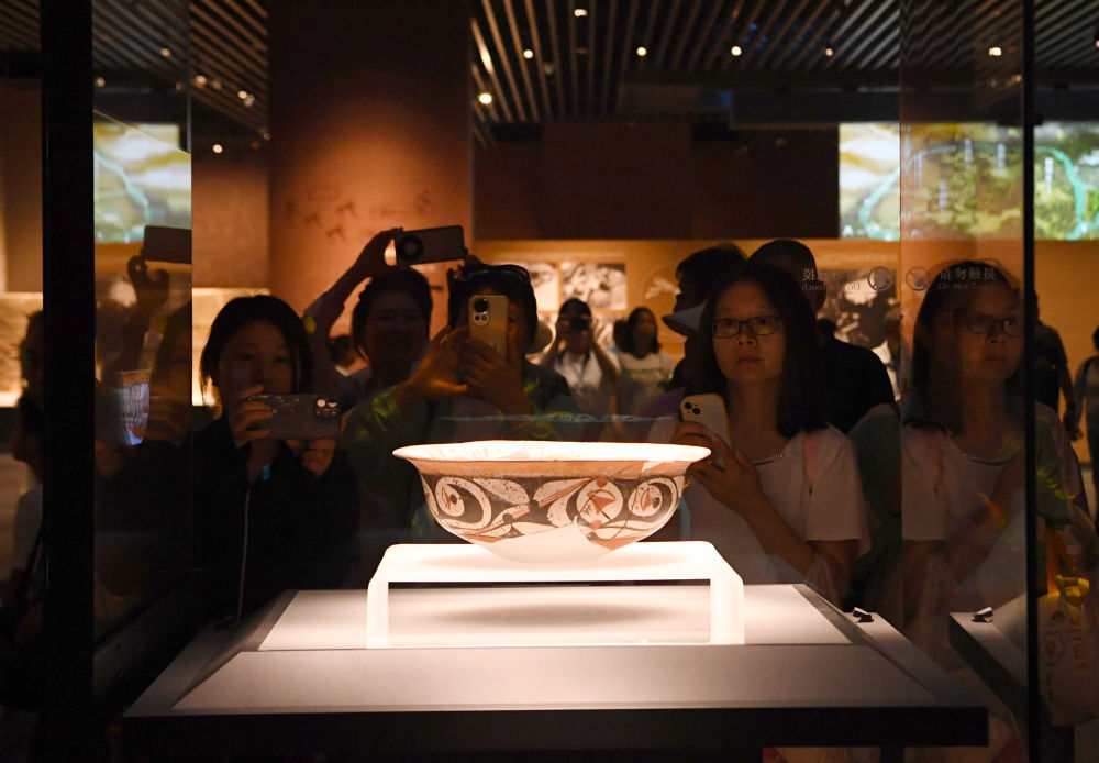 絢麗的彩陶是仰韶文化的代表性器物。作為中國分布范圍最廣的新石器時代考古學文化,仰韶文化在距今7000年至5000年這一時期,在黃河流域持續(xù)穩(wěn)定發(fā)展。“尤其是在距今約6000年前,仰韶文化廟底溝類型向外影響,為后來統(tǒng)一中國的建立打下了重要根基,形成了‘早期中國文化圈’或者文化意義上的‘早期中國’?!敝袊嗣翊髮W歷史學院考古文博系教授韓建業(yè)說。