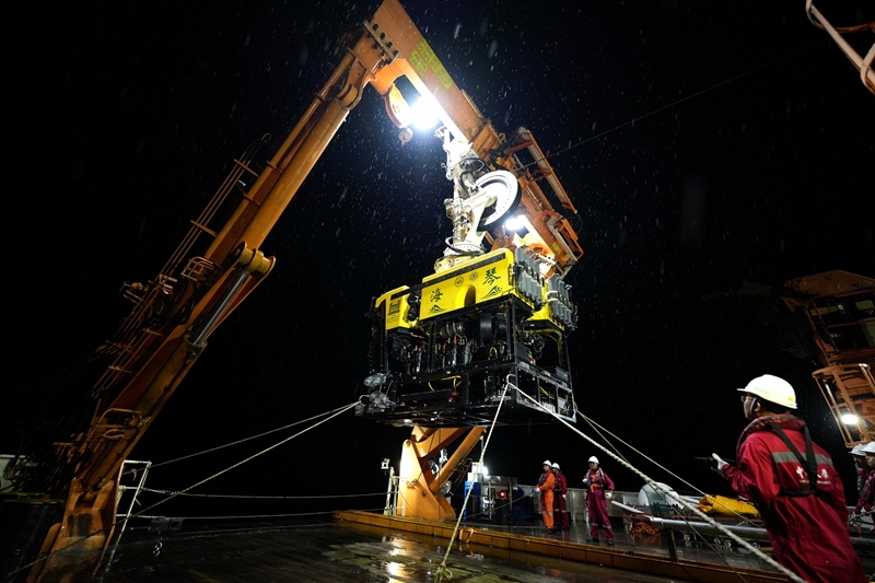 “海琴”號由上海交通大學(xué)水下工程研究所自主研制,是為“中山大學(xué)”號海洋綜合科考實習(xí)船量身定制的新型高效深海電動ROV系統(tǒng),搭載了高清攝像機、多功能機械手、探測傳感器等科考設(shè)備,具備自動定向、懸停定位、自動巡線等智能作業(yè)能力。