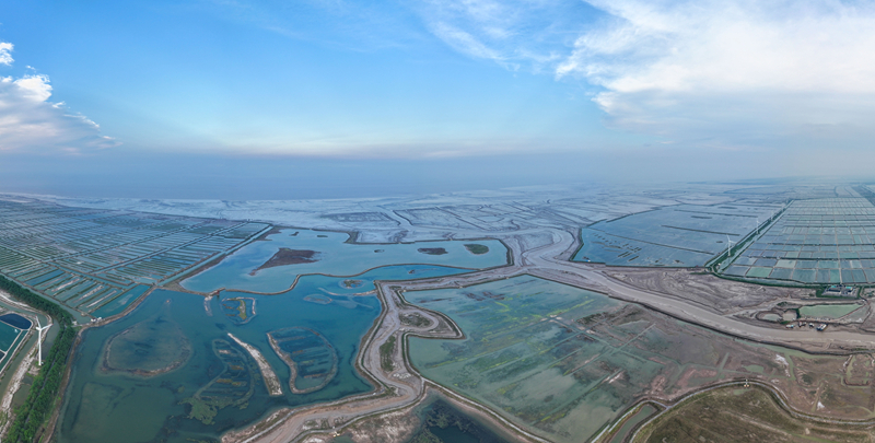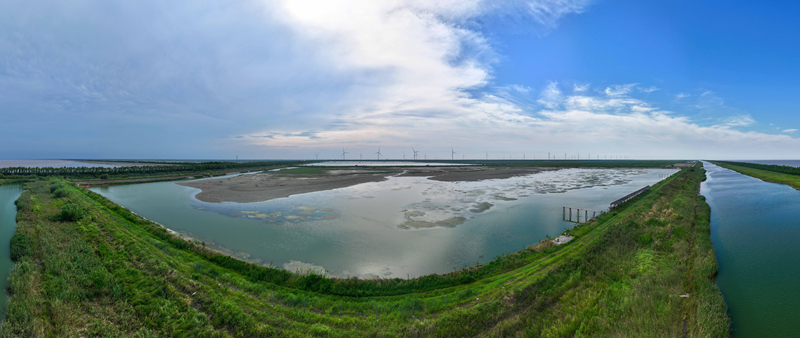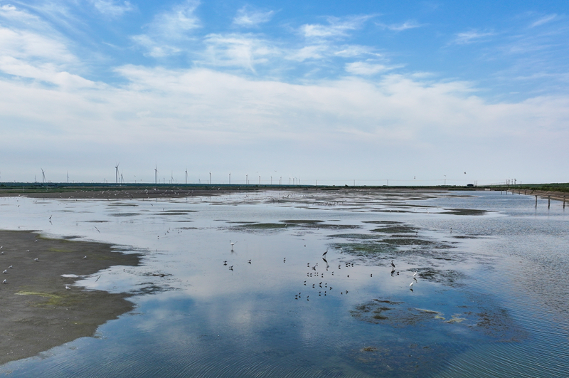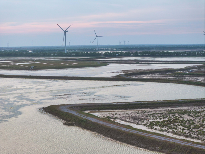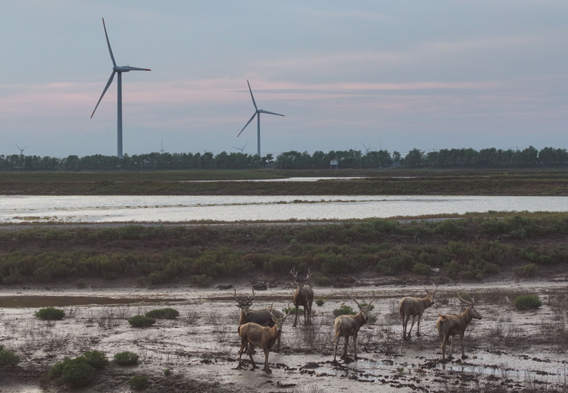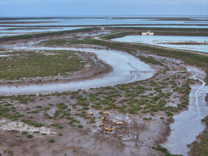 江蘇省鹽城市東臺市條子泥濕地區(qū)域總面積129萬畝。2019年,作為中國黃(渤)海候鳥棲息地(第一期)重要組成部分被列入世界遺產名錄。近年來,條子泥濕地秉承“基于自然的解決方案”理念,開展了川水灣海岸帶生態(tài)保護項目,并在東臺海堤西側專門辟出720畝魚塘,打造了國內第一塊固定高潮位棲息地。生態(tài)保護修復工程的實施使條子泥一些珍稀物種種群數(shù)量屢創(chuàng)新高,大批的水鳥、成群的麋鹿等野生動物在此“落戶”,濕地修復初顯成效。