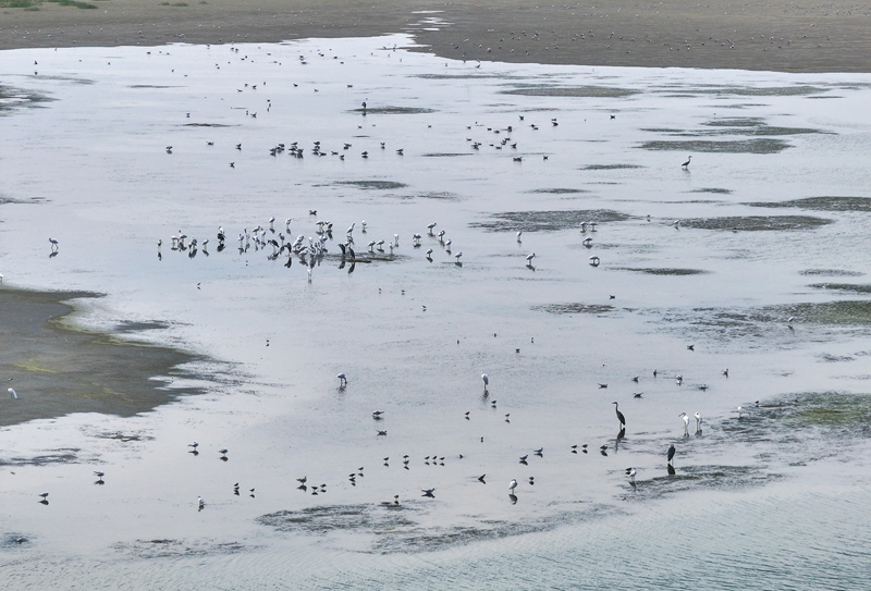 8月25日拍攝的東臺條子泥濕地“720”高潮位棲息地(無人機照片)。