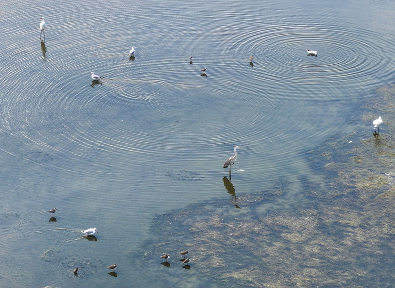 8月25日,群鳥棲息在東臺條子泥濕地“720”高潮位棲息地(無人機照片)。