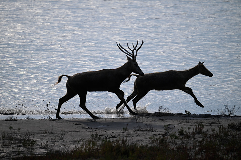 8月25日,野生麋鹿棲息在川水灣(無人機照片)。