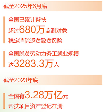 防止返貧動態(tài)監(jiān)測幫扶機制是鞏固拓展脫貧攻堅成果最基本的制度安排。這幾年,各地建立健全防止返貧致貧動態(tài)監(jiān)測幫扶機制,截至6月底,全國已累計幫扶超過680萬監(jiān)測對象穩(wěn)定消除返貧致貧風(fēng)險,義務(wù)教育、基本醫(yī)療、住房安全和飲水安全保障水平得到鞏固提升。