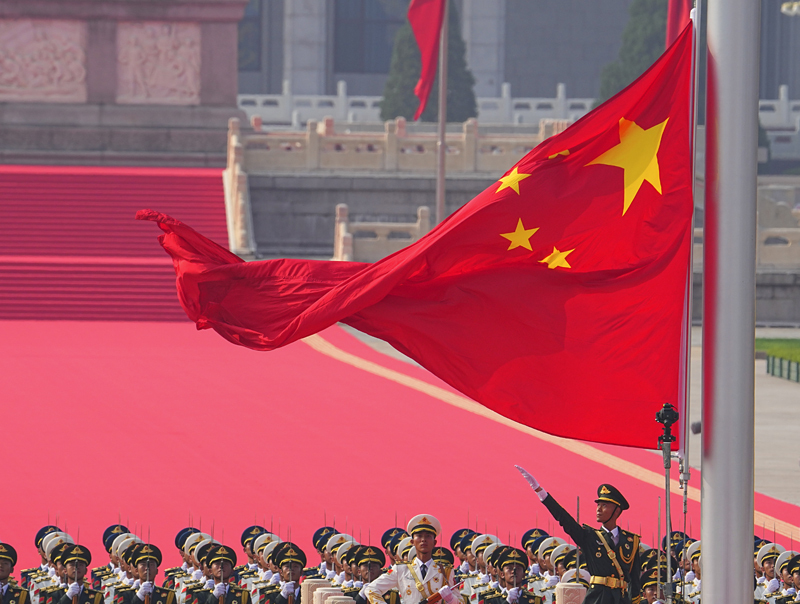 9月3日,紀念中國人民抗日戰(zhàn)爭暨世界反法西斯戰(zhàn)爭勝利80周年大會在北京隆重舉行。這是天安門廣場舉行隆重的升國旗儀式。