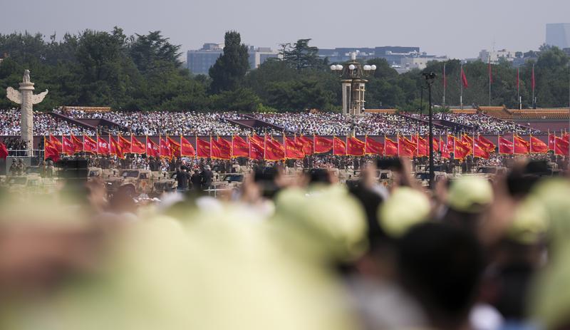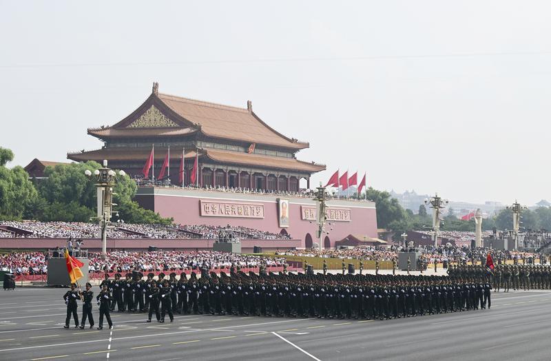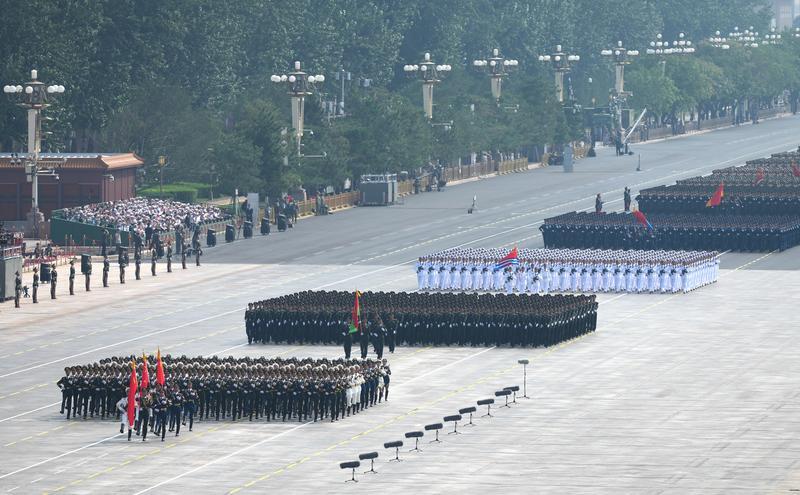 9月3日,紀(jì)念中國人民抗日戰(zhàn)爭暨世界反法西斯戰(zhàn)爭勝利80周年大會在北京隆重舉行。這是徒步方隊(duì)接受檢閱。