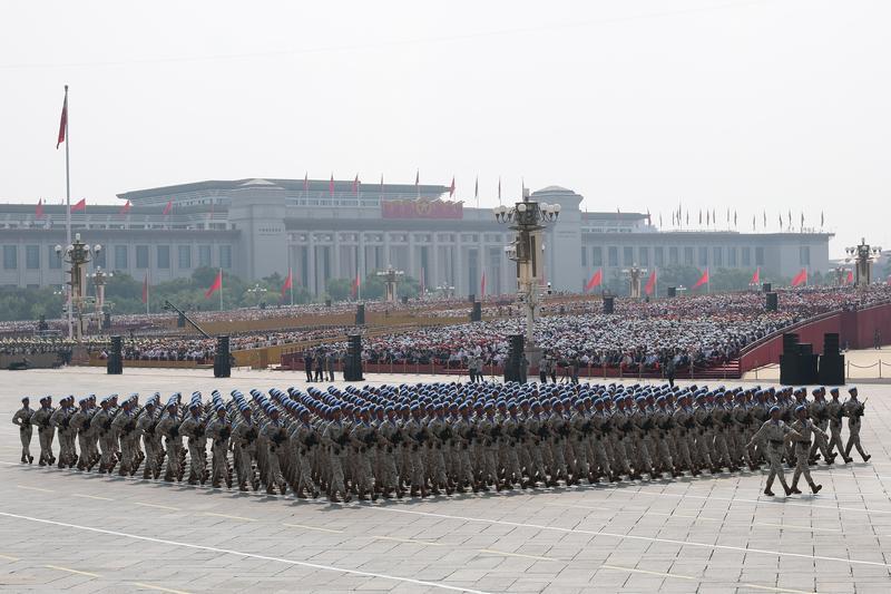 9月3日,紀(jì)念中國人民抗日戰(zhàn)爭暨世界反法西斯戰(zhàn)爭勝利80周年大會在北京隆重舉行。這是維和部隊(duì)方隊(duì)接受檢閱。