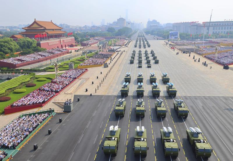 9月3日,紀(jì)念中國人民抗日戰(zhàn)爭暨世界反法西斯戰(zhàn)爭勝利80周年大會在北京隆重舉行。這是火箭軍方隊(duì)接受檢閱。