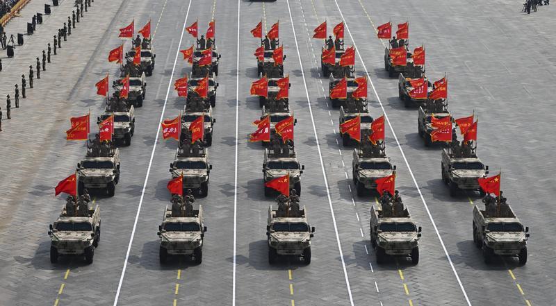 9月3日,紀(jì)念中國人民抗日戰(zhàn)爭暨世界反法西斯戰(zhàn)爭勝利80周年大會在北京隆重舉行。這是裝備方隊(duì)接受檢閱。