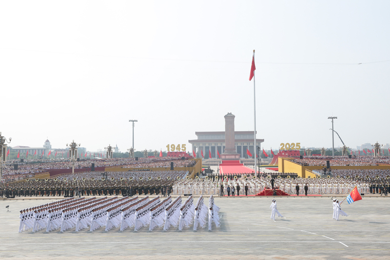 9月3日,紀(jì)念中國人民抗日戰(zhàn)爭暨世界反法西斯戰(zhàn)爭勝利80周年大會在北京隆重舉行。這是海軍方隊(duì)接受檢閱。