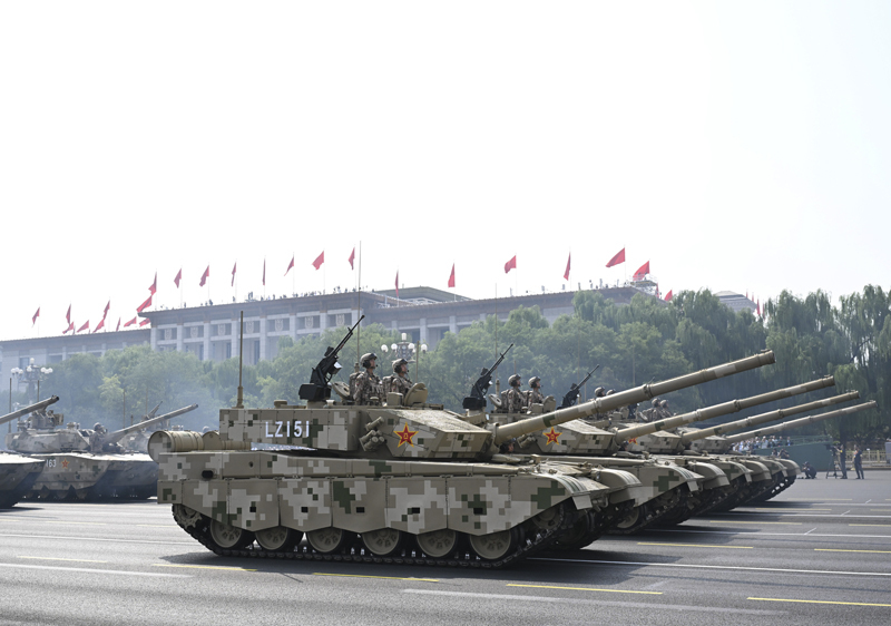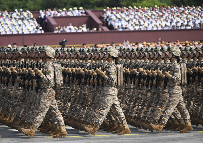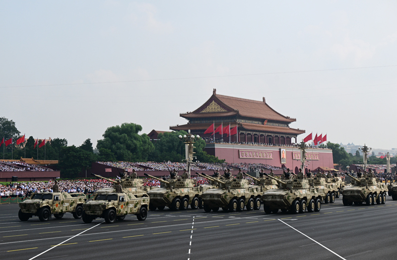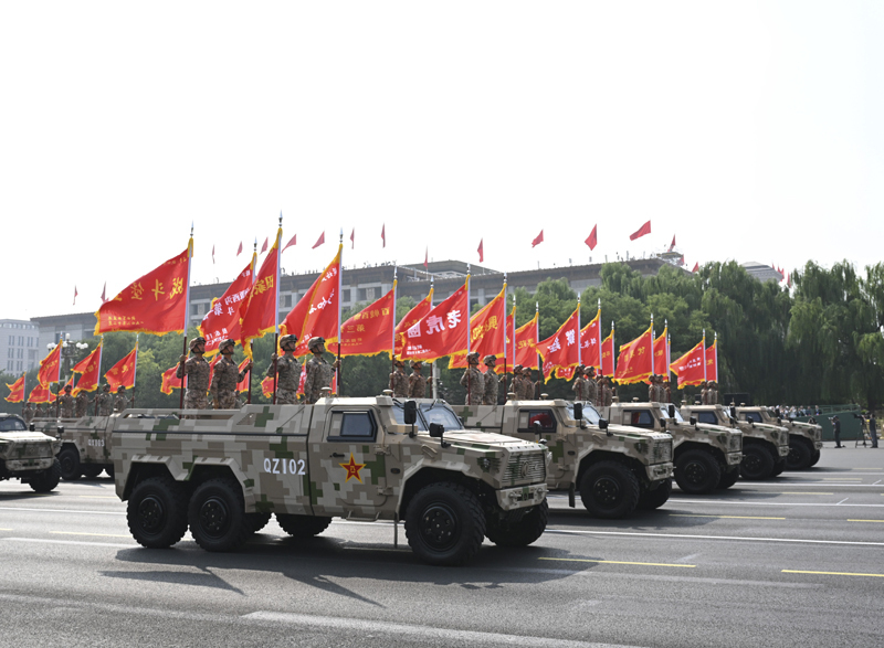 9月3日,紀(jì)念中國人民抗日戰(zhàn)爭暨世界反法西斯戰(zhàn)爭勝利80周年大會在北京隆重舉行。這是地面突擊方隊(duì)接受檢閱。
