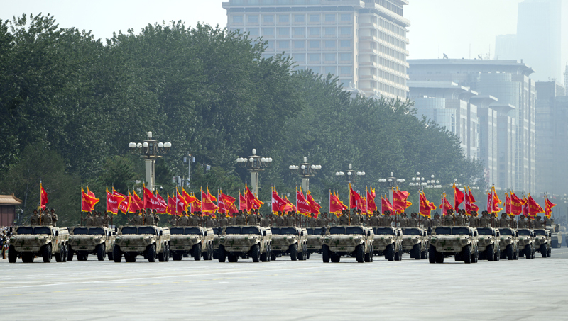 9月3日,紀(jì)念中國人民抗日戰(zhàn)爭暨世界反法西斯戰(zhàn)爭勝利80周年大會在北京隆重舉行。這是信息支援部隊(duì)方隊(duì)接受檢閱。