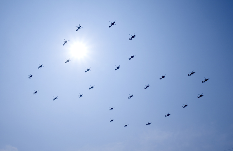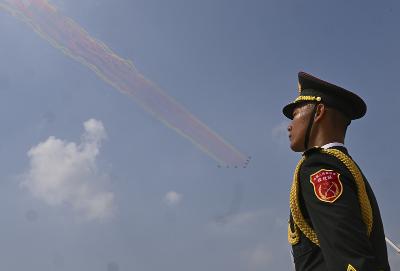 9月3日,紀(jì)念中國人民抗日戰(zhàn)爭暨世界反法西斯戰(zhàn)爭勝利80周年大會在北京隆重舉行。這是空中梯隊(duì)接受檢閱。