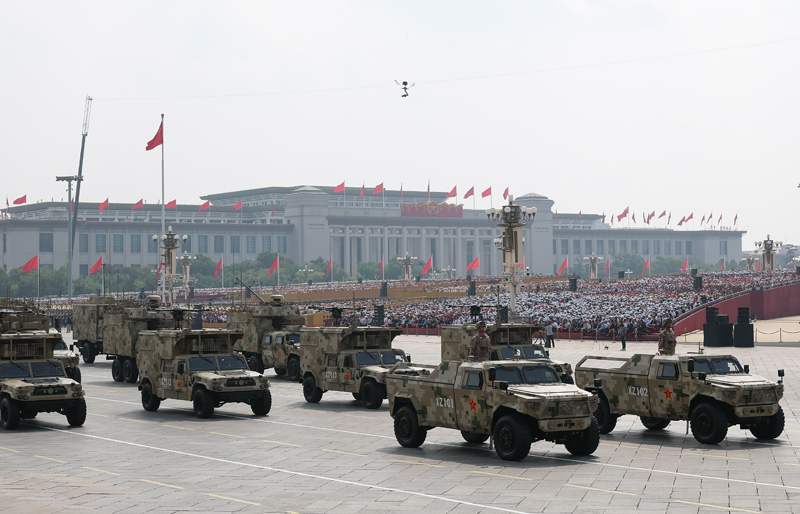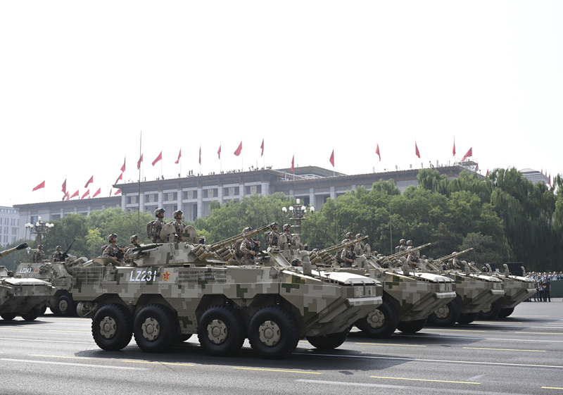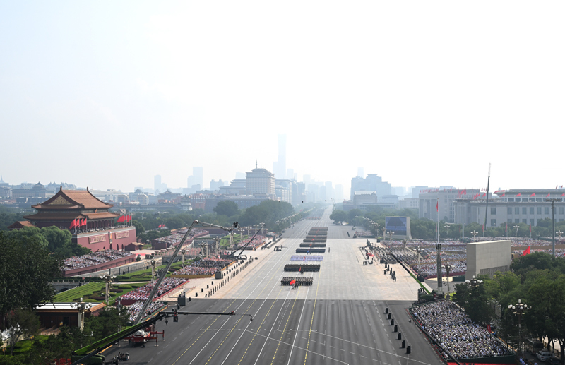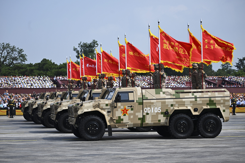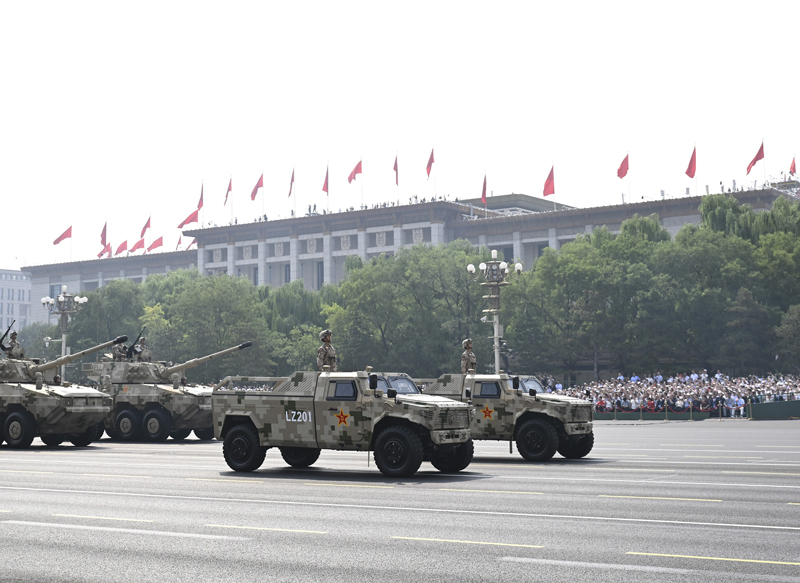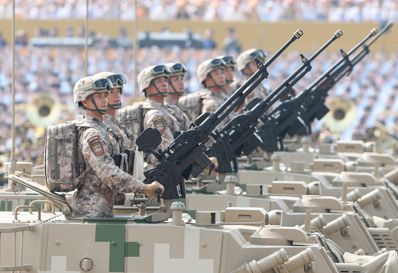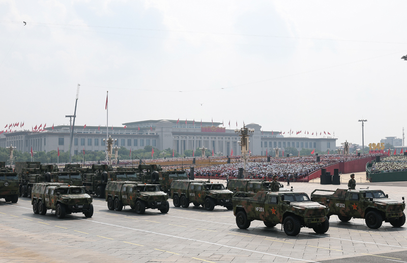 9月3日,紀(jì)念中國人民抗日戰(zhàn)爭暨世界反法西斯戰(zhàn)爭勝利80周年大會在北京隆重舉行。這是裝備保障方隊接受檢閱。
