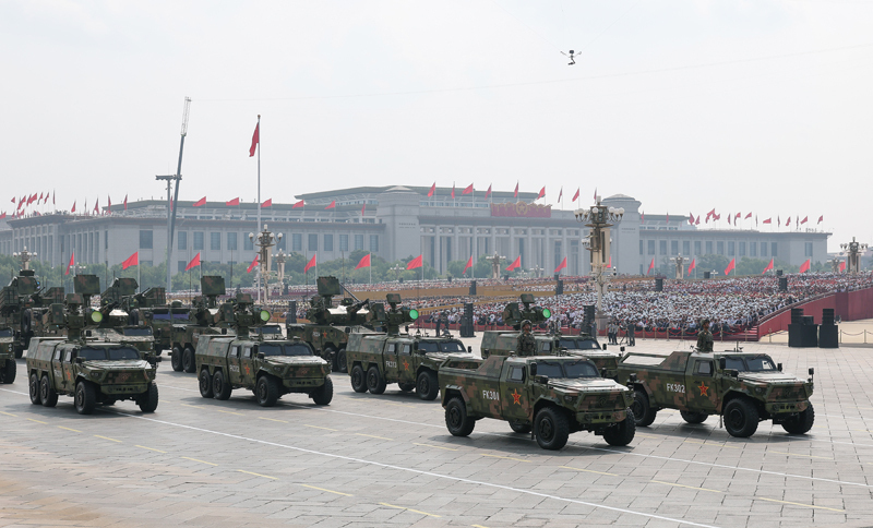 9月3日,紀(jì)念中國人民抗日戰(zhàn)爭暨世界反法西斯戰(zhàn)爭勝利80周年大會在北京隆重舉行。這是預(yù)警探測方隊接受檢閱。