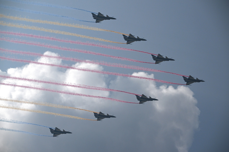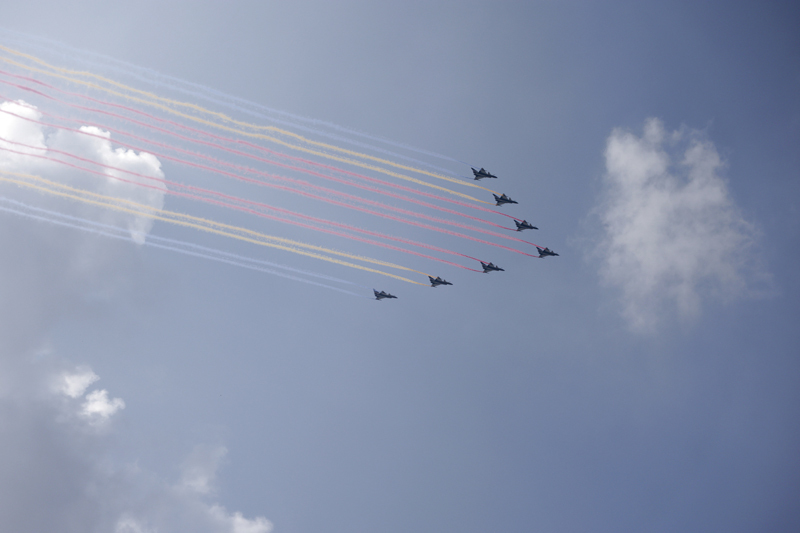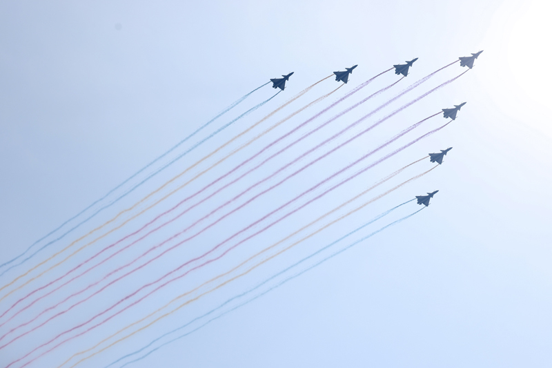 9月3日,紀(jì)念中國人民抗日戰(zhàn)爭暨世界反法西斯戰(zhàn)爭勝利80周年大會在北京隆重舉行。這是教練機(jī)梯隊接受檢閱。