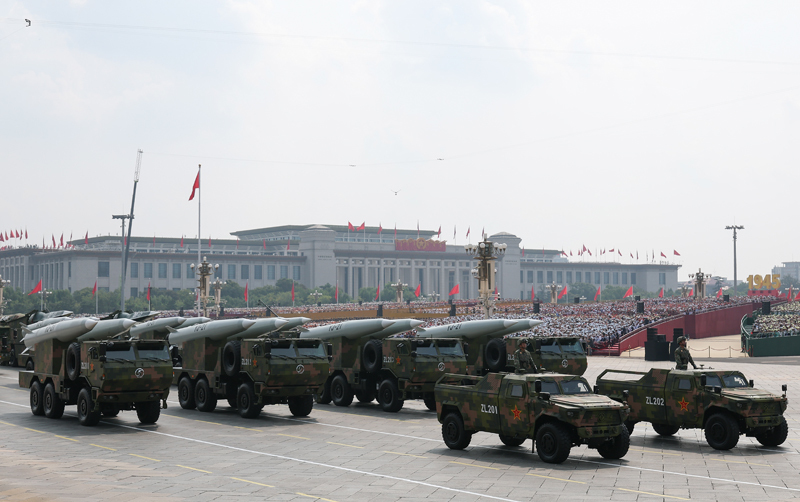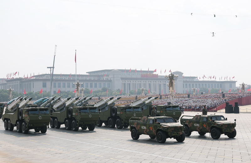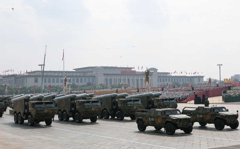 9月3日,紀(jì)念中國人民抗日戰(zhàn)爭暨世界反法西斯戰(zhàn)爭勝利80周年大會在北京隆重舉行。這是高超聲速導(dǎo)彈方隊接受檢閱。