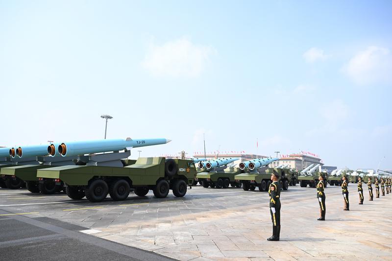 9月3日,紀(jì)念中國人民抗日戰(zhàn)爭暨世界反法西斯戰(zhàn)爭勝利80周年大會在北京隆重舉行。這是巡航導(dǎo)彈方隊接受檢閱。
